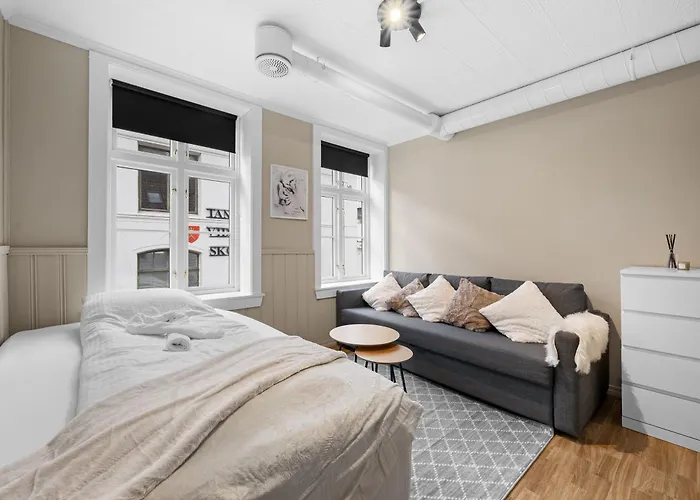 В 1 км от апартаментов находится Башня Розенкранц, а в 1 км гостей ожидает Ганзейская набережная Брюгген. Прогулявшись 10 минут, гости окажутся в центре Бергена. Апартаменты расположены на небольшом расстоянии от нескольких достопримечательностей, например Музея Брюггена.